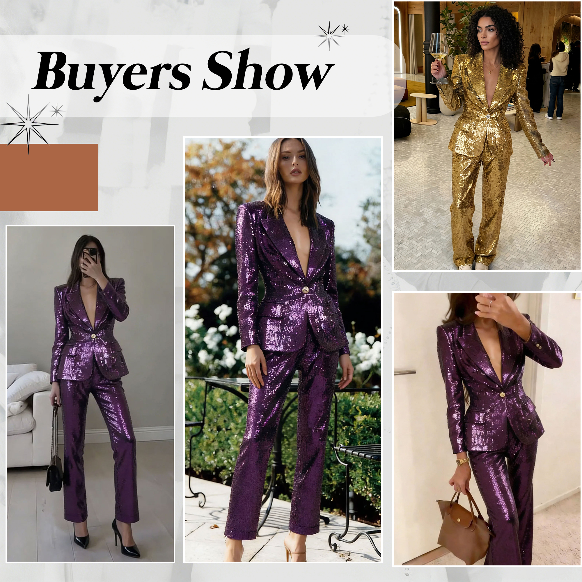 This 2 Piece women party suit is a dazzling choice for those who want to shine with confidence and elegance. Crafted with shimmering sequins throughout, it delivers a glamorous sparkle that ensures all eyes will be on you at any event. The tailored blazer with long sleeves adds a sophisticated touch, balancing the bold sparkle with a structured silhouette. Its flattering cut enhances the figure while offering comfort and ease of movement. Paired with matching sequin pants, the suit creates a cohesive, head-turning ensemble that blends modern style with timeless allure.