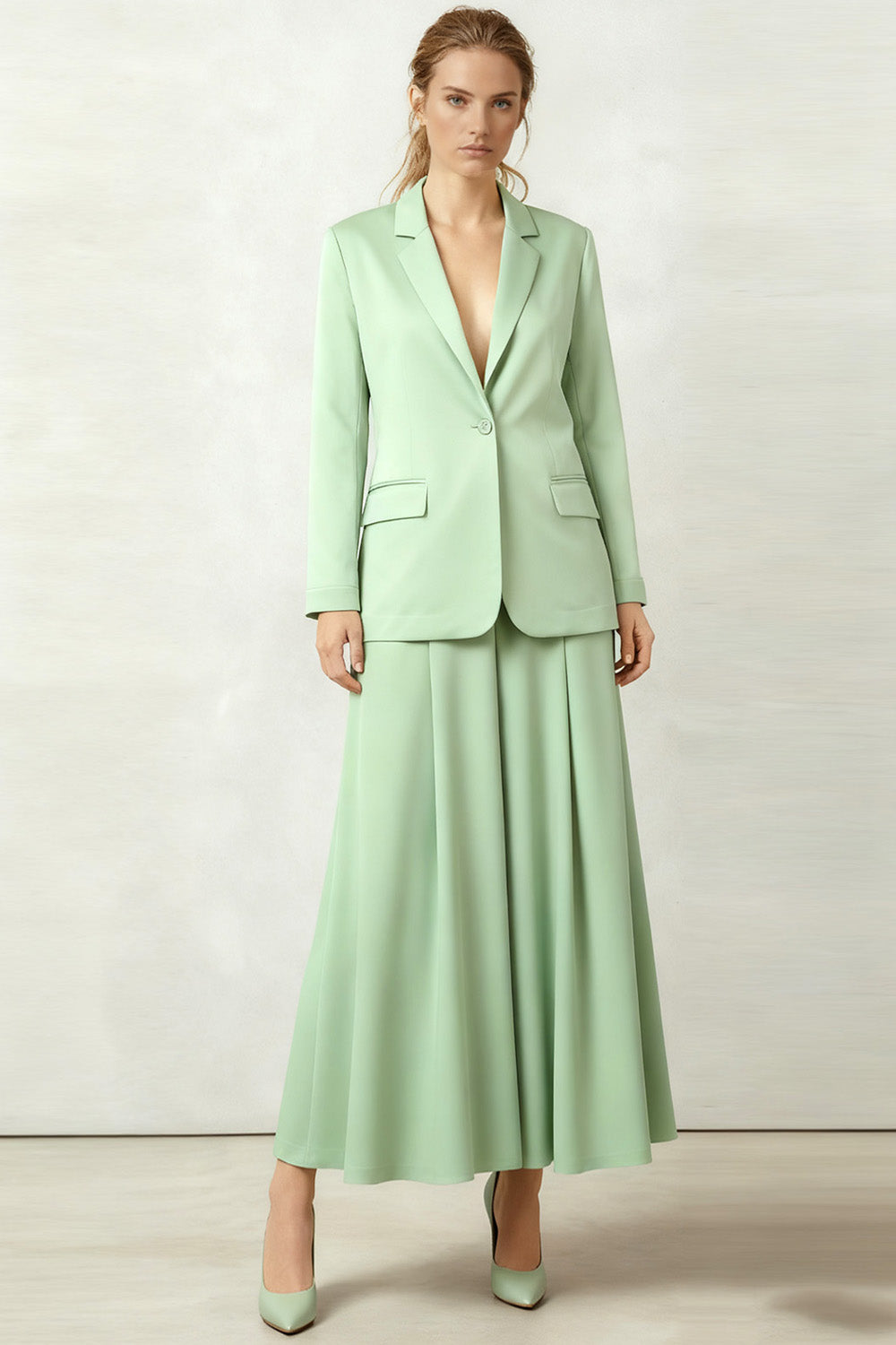 2 Piece Light Green Single Breasted Long Business Suits with Sleeves