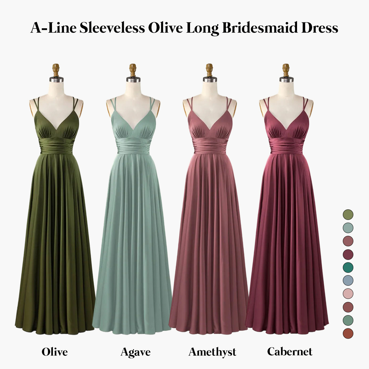 A-Line Sleeveless Olive Long Bridesmaid Dress