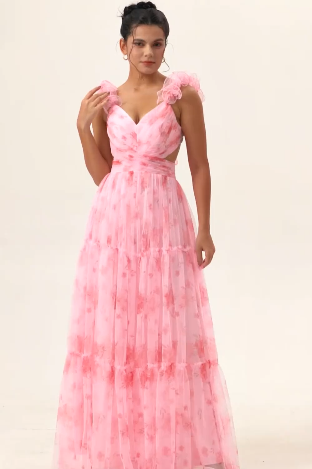 Blush Floral Chiffon V-Neck Maxi Wedding Guest Dress