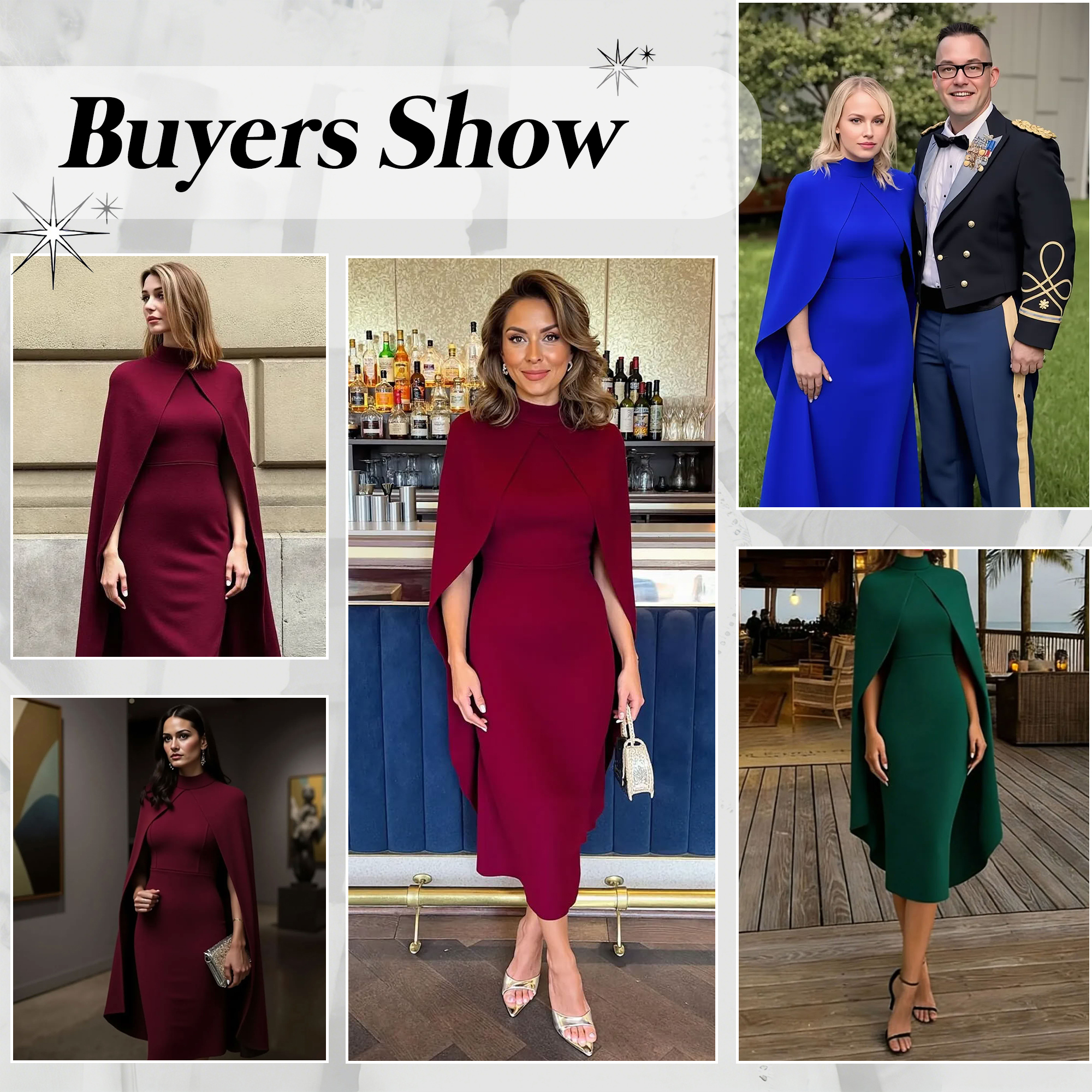 This dress is the perfect choice for women who want elegance with a modern twist. Designed in a rich burgundy hue, it exudes sophistication and confidence, making it ideal for formal events, galas, or evening occasions. The sleek sheath silhouette follows the body’s natural curves. What truly sets this dress apart is the dramatic cape detail, which flows effortlessly with every movement, creating a sense of power and glamour. The cape also provides subtle coverage while enhancing the overall statement look.