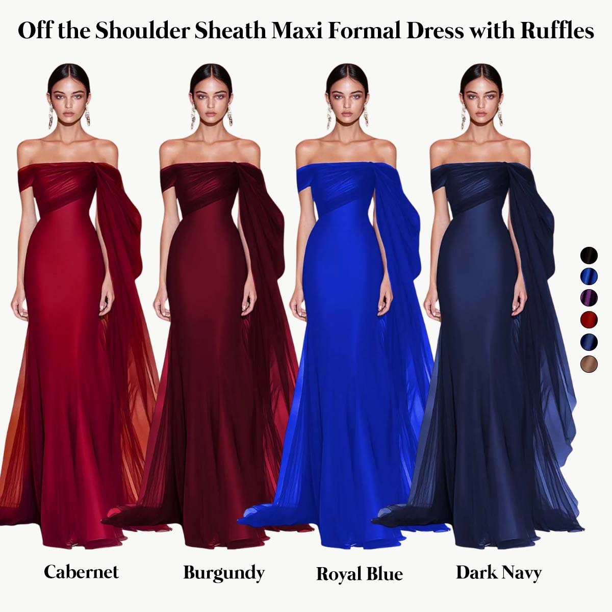 Cabernet Off the Shoulder Sheath Maxi Formal Dress with Ruffles