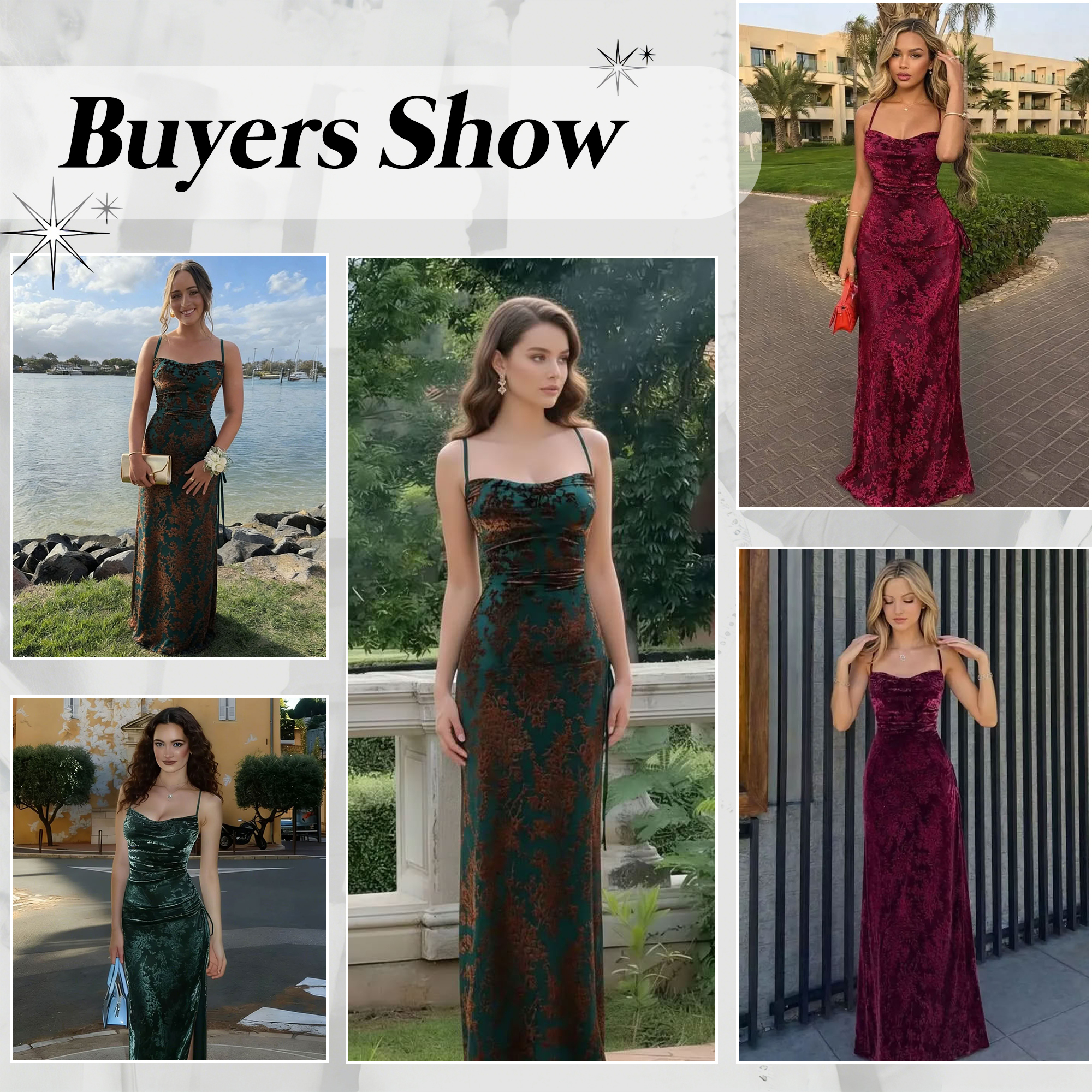 Luxurious and alluring, this burnout velvet dress embodies timeless elegance with a modern touch. Crafted from sumptuous velvet, it catches the light beautifully, creating a rich, sophisticated sheen. The sheath silhouette softly hugs the body, enhancing natural curves, while the delicate spaghetti straps and subtle neckline add a graceful, feminine charm. The deep dark green hue exudes poise and depth, making it a perfect choice for autumn or winter weddings.