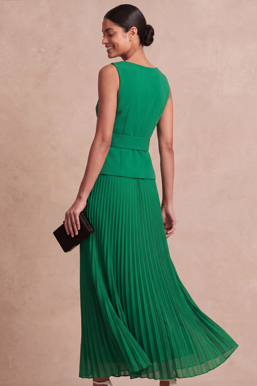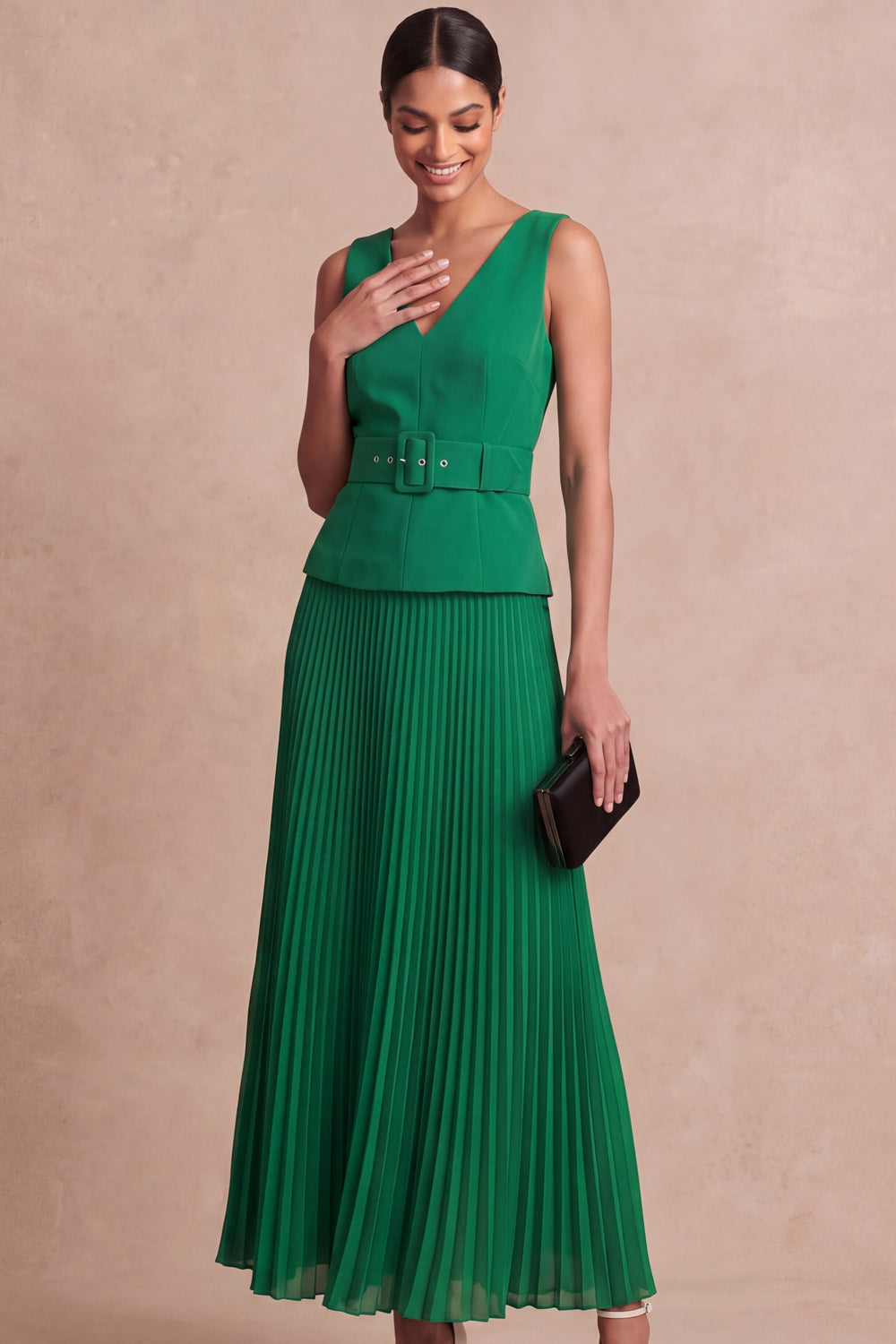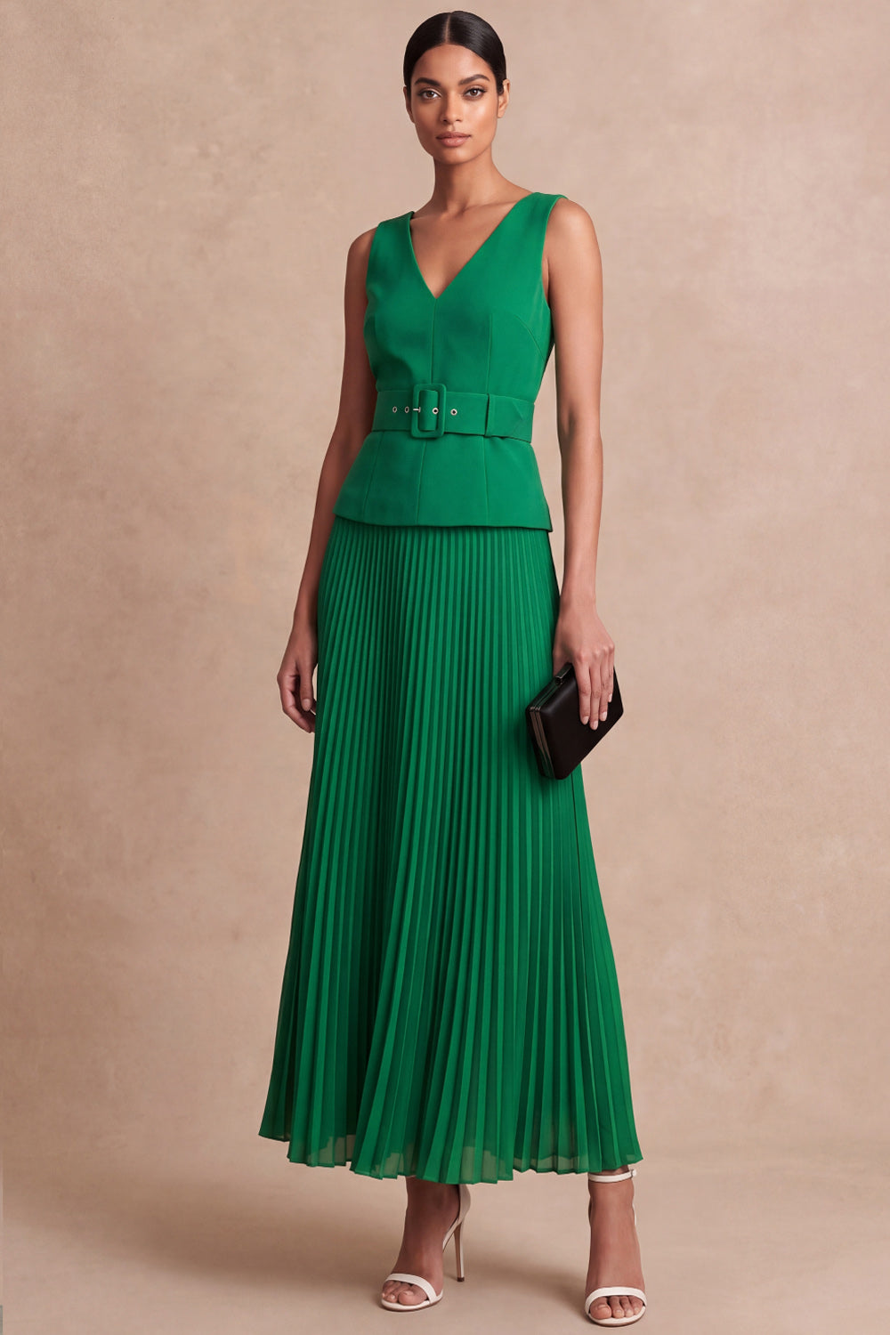 Emerald Green A Line Pleated Long Formal Dress with Belt