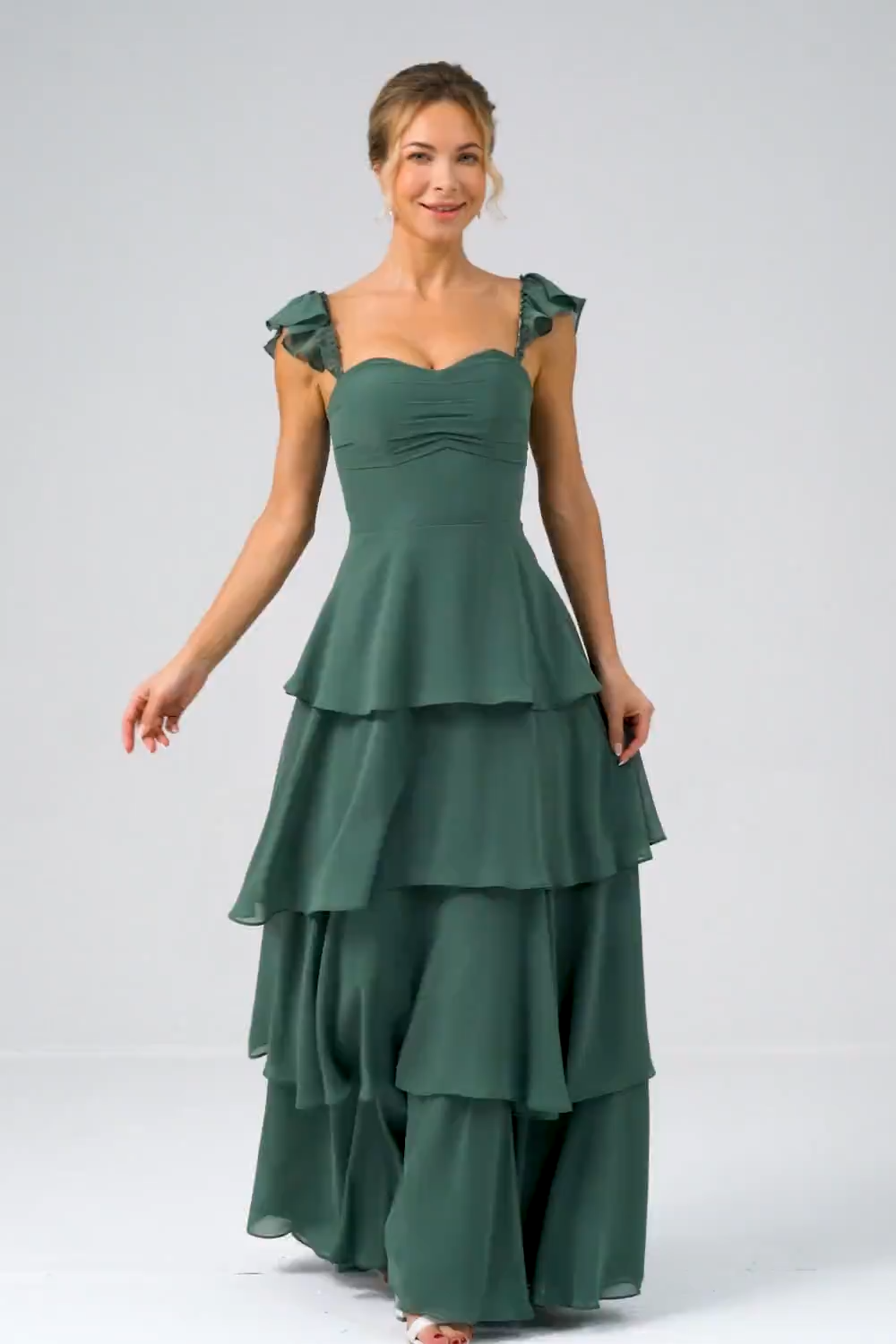 Eucalyptus Off the Shoulder Tiered Chiffon Bridesmaid Dress