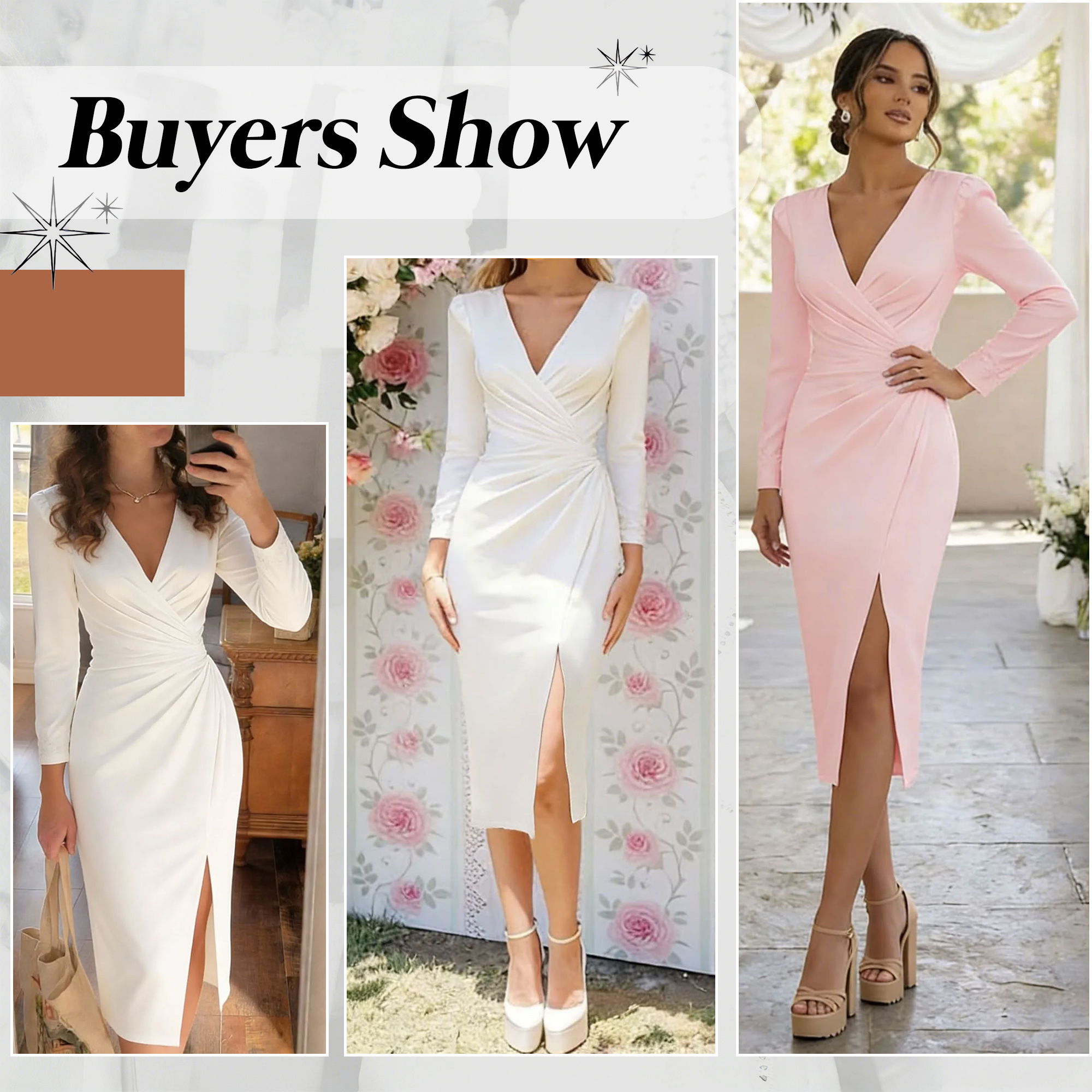 This white dress is the epitome of sophistication and modern elegance. The dress features a flattering V-neckline that beautifully frames the neckline and collarbones, while the bodycon fit hugs your curves for a sleek, streamlined silhouette. A daring thigh-high slit adds a bold, confident edge to the design, making it perfect for an engagement celebration or any special occasion where you want to make a statement.
