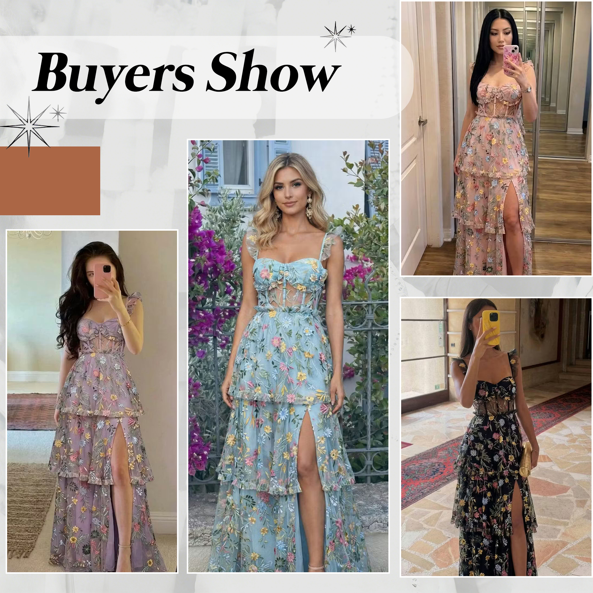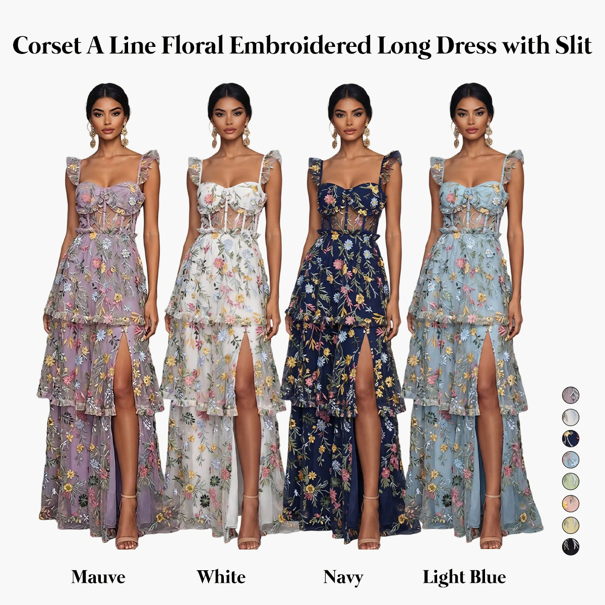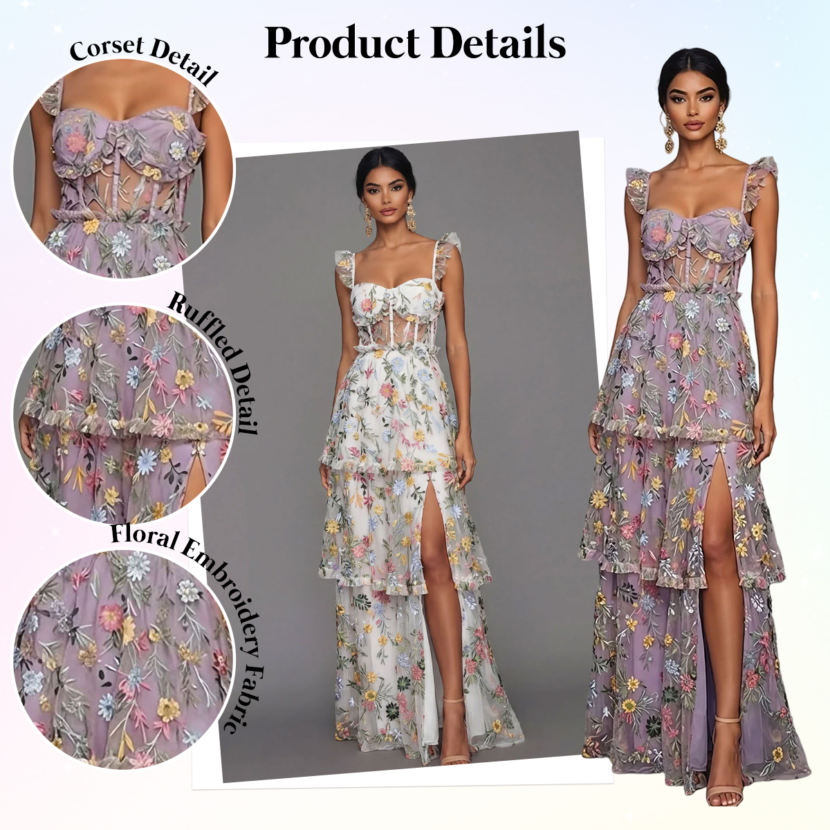 Embellishment: Floral, Embroidery, with Slit, Corset, Tiered