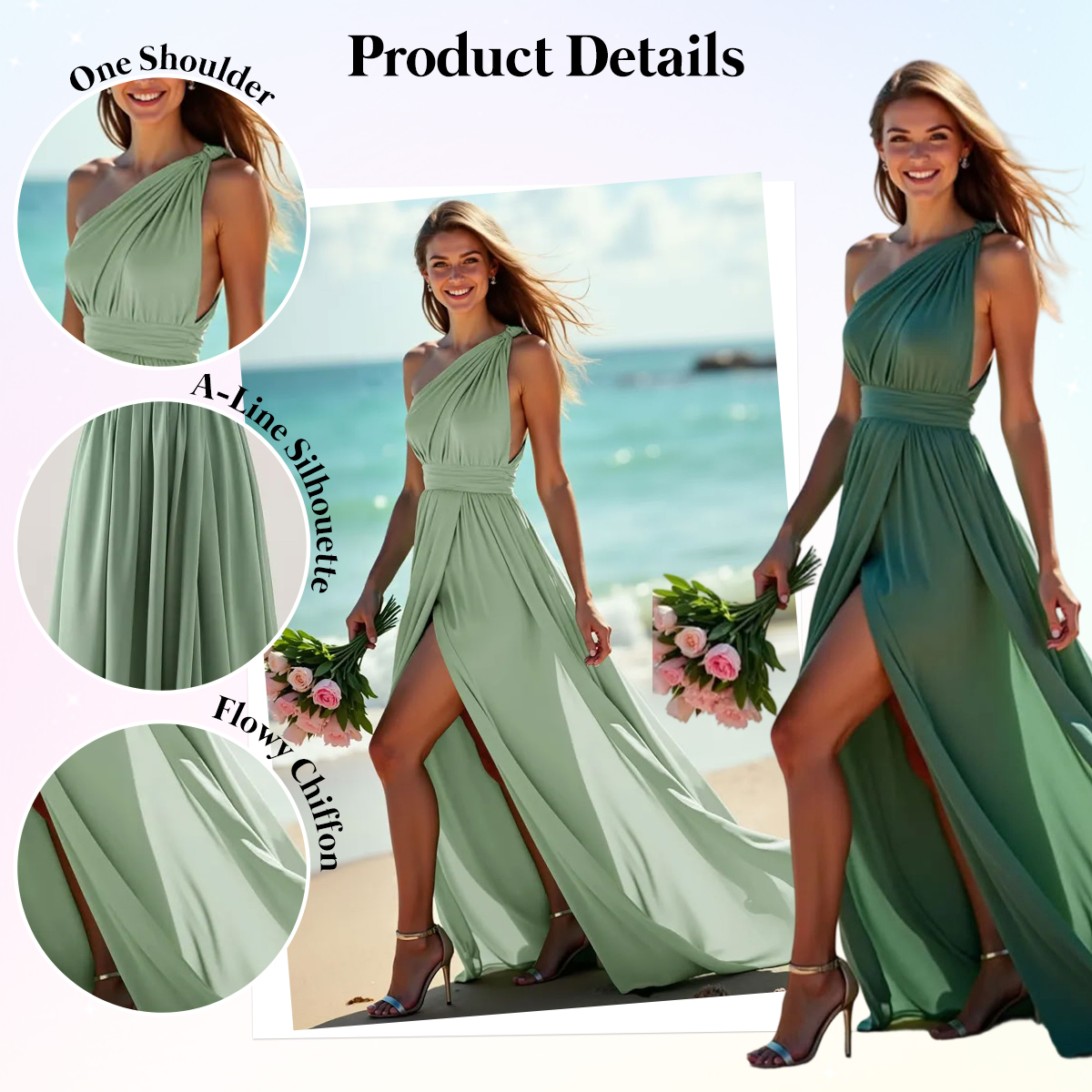 This Boho dress blends effortless bohemian charm with elegant femininity, making it a beautiful choice for modern weddings. Crafted from lightweight, flowing fabric, the maxi-length skirt drapes gracefully and moves beautifully with every step. A high side slit adds subtle allure and ease of movement, elongating the legs without overpowering the look. Finished in a refreshing green tone inspired by nature, this dress is perfect for garden, beach, or outdoor ceremonies and pairs effortlessly with delicate heels and minimal jewelry for a refined yet relaxed bridesmaid style.
