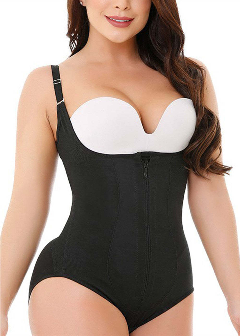 U-SHAPE OPEN BUST design allows you to wear your own favorite bra and push up your breast, and adjustable straps can choose the suitable size. Double-gusset for ease when nature calls.