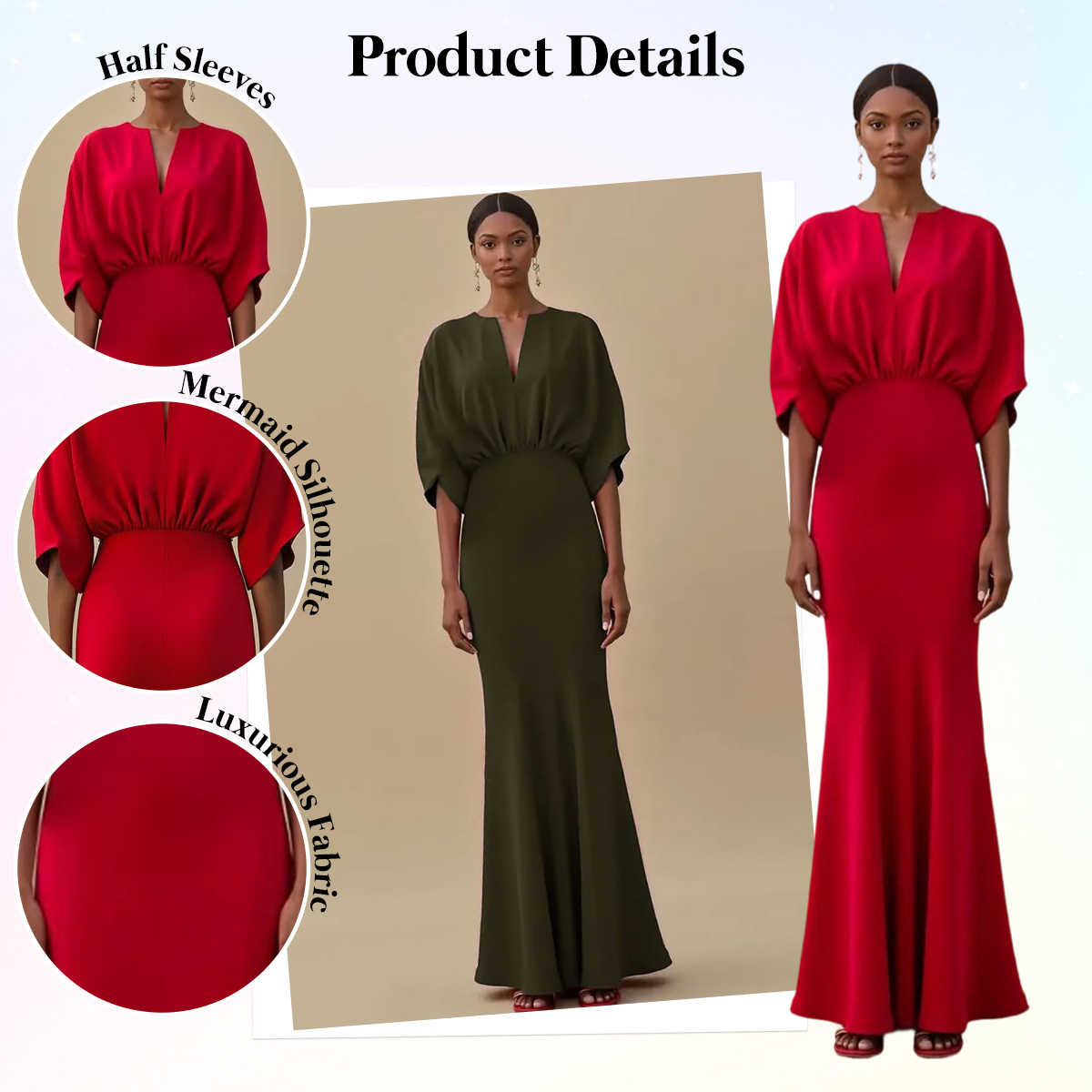 This dress is a stunning expression of elegance and confident femininity. Designed with a figure-hugging mermaid silhouette, it accentuates the natural curves before flaring gracefully at the hem for a dramatic and refined finish. Crafted from smooth, high-quality fabric, it offers both comfort and structure, ensuring a flattering fit throughout the evening. The rich red hue exudes timeless glamour and makes a bold statement, ideal for galas, evening parties, weddings, or black-tie events.