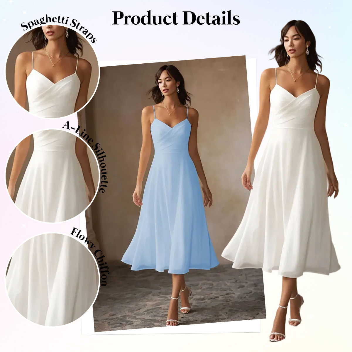 Simple White Chiffon A Line Spaghetti Straps Midi Engagement Dress