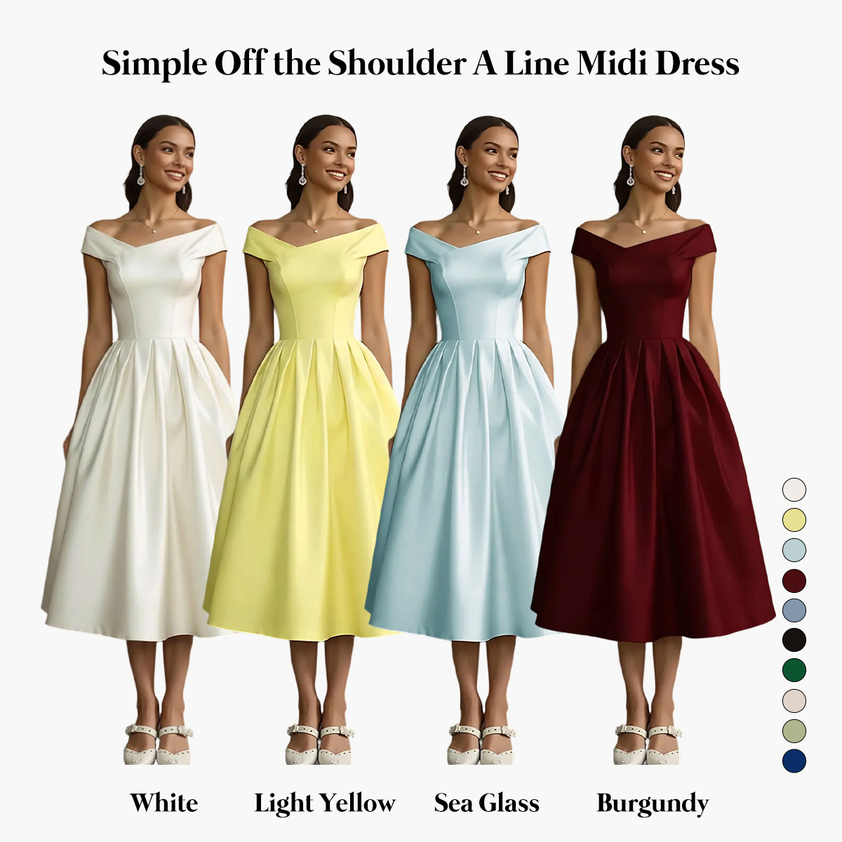 Simple White Off the Shoulder A Line Midi Engagement Dress