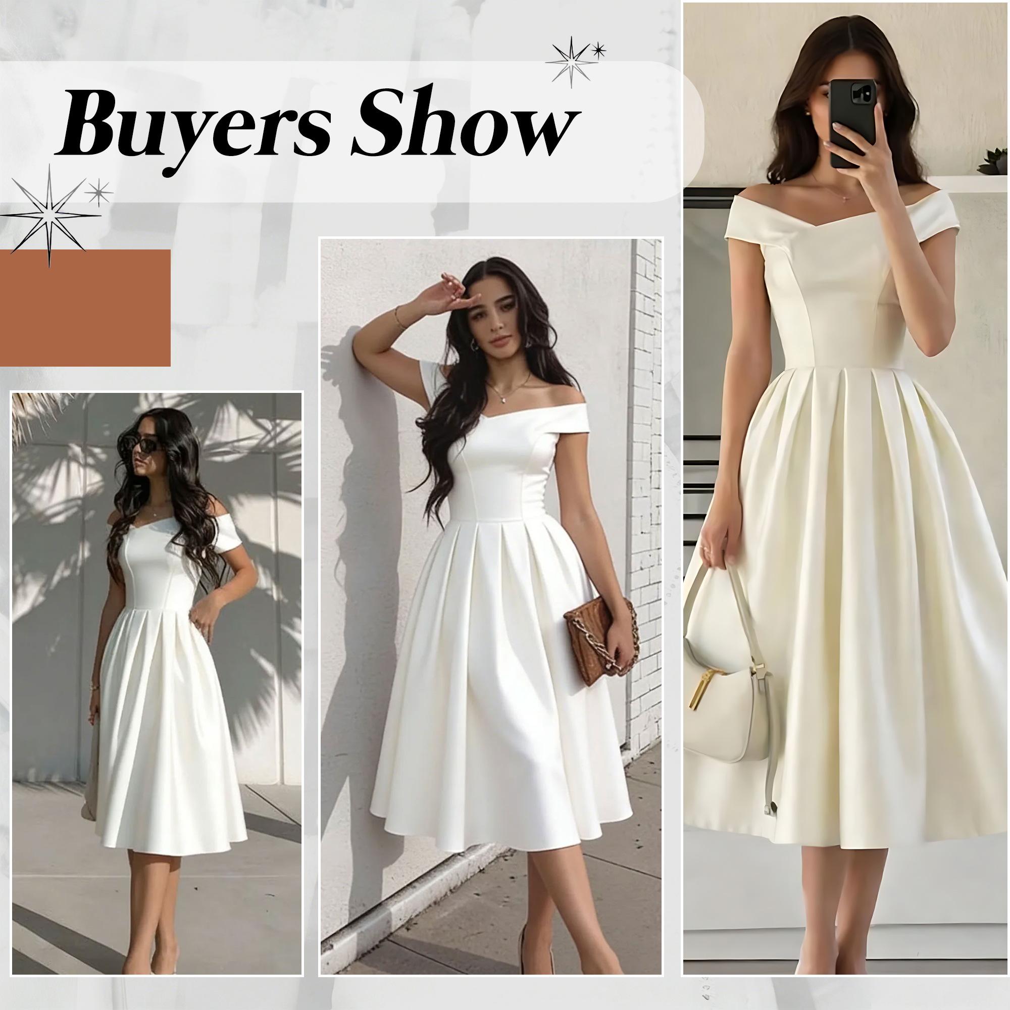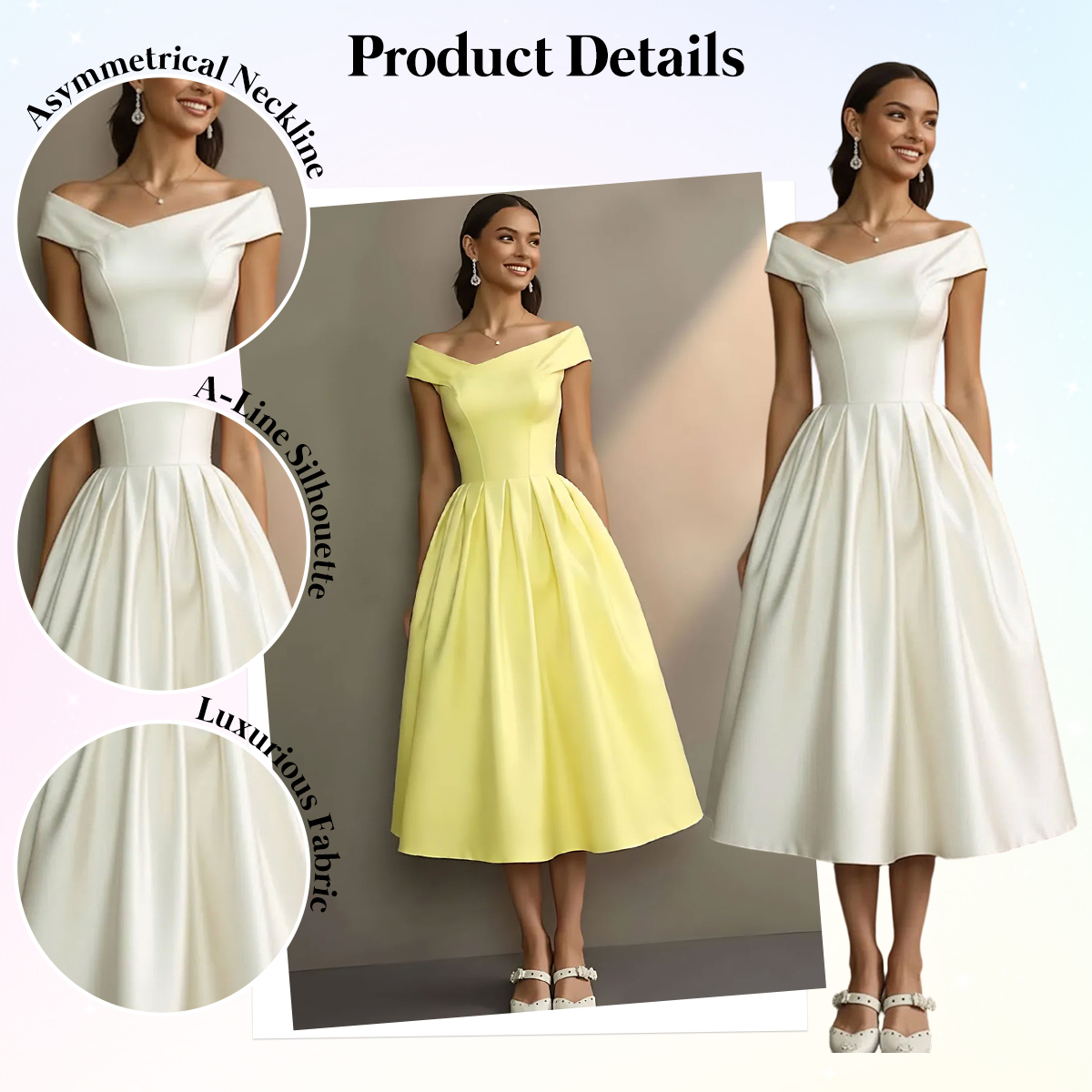 This dress embodies effortless elegance and romantic charm, making it a perfect choice for an engagement celebration or bridal event. Designed with a fitted bodice and a flowing A-line skirt, it flatters the waist while allowing comfortable movement. The clean white hue enhances its timeless appeal, while the midi length adds a touch of sophistication suitable for both formal and semi-formal occasions. Lightweight and easy to wear, this dress pairs beautifully with delicate heels and minimal jewelry, offering a polished yet understated bridal look that feels modern, chic, and unforgettable.