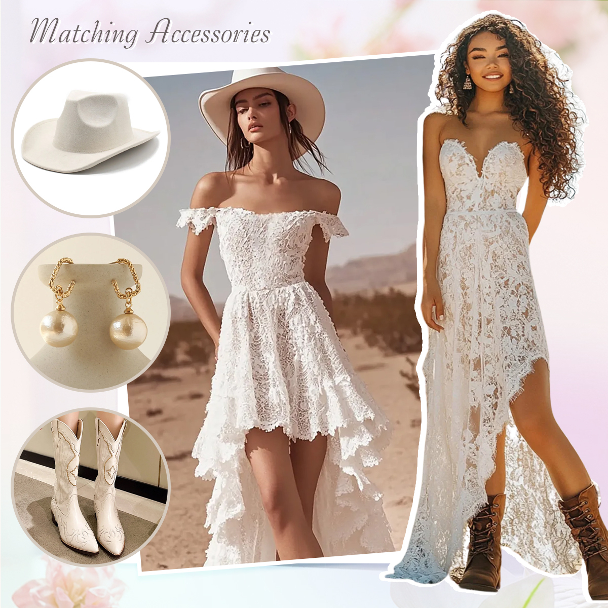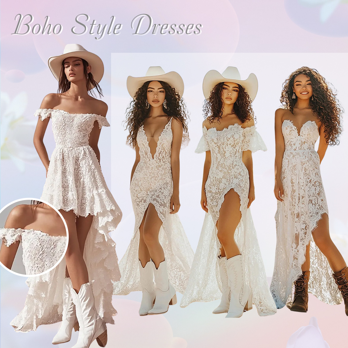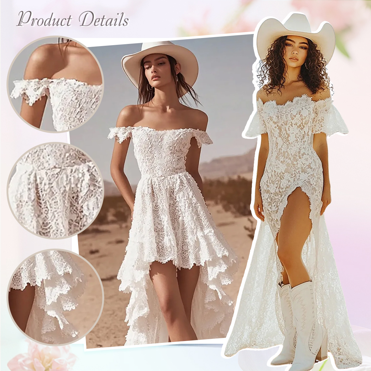 Embrace effortless elegance with this boho dress. Crafted from delicate floral lace, this dress captures a free-spirited charm with its flowing A-line silhouette and romantic high-low hem. The ruffled detailing along the neckline and hem adds a soft, whimsical touch, making it perfect for garden parties, beach weddings, or summer festivals. The bohemian-inspired design features a flattering fitted bodice that cinches at the waist, enhancing your natural shape while allowing for comfortable movement. The sheer lace overlay and subtle lining create an ethereal, light-as-air look that’s both feminine and timeless.