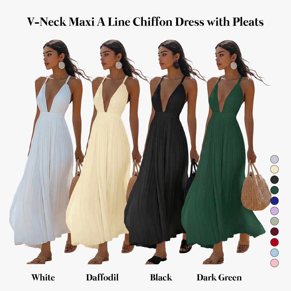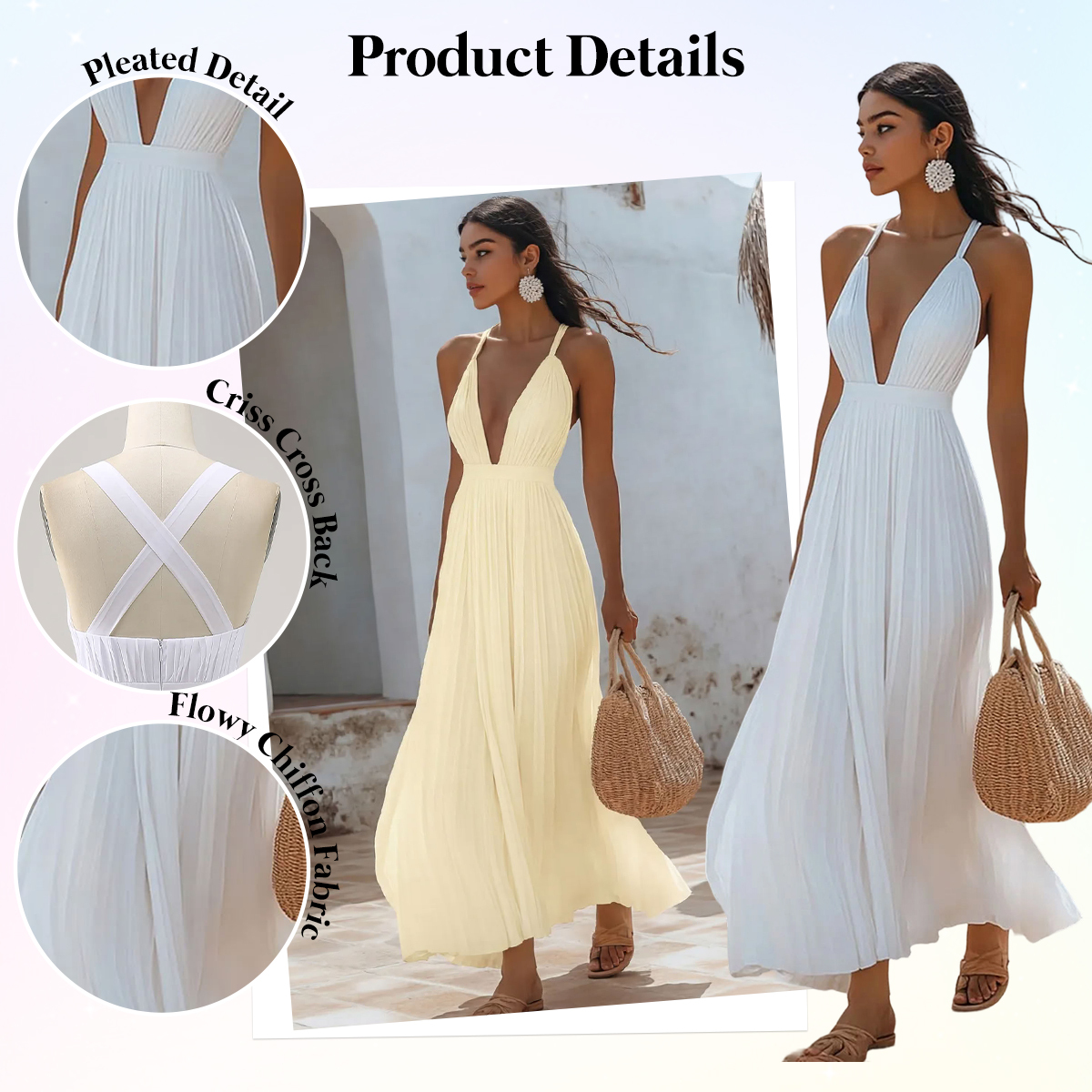 This dress exudes effortless elegance and romantic charm, making it a beautiful choice for an engagement celebration or pre-wedding event. Crafted from lightweight chiffon, it flows gracefully with every step, creating a soft and airy silhouette. The maxi length adds a sense of timeless sophistication, perfect for both indoor and outdoor occasions. Finished in a classic white hue, this engagement dress pairs seamlessly with delicate heels and subtle jewelry, creating a refined, graceful look that feels both romantic and effortlessly bridal.